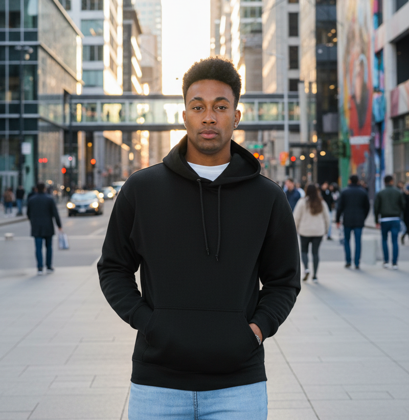 Functional Design: Kangaroo pouch pocket and side seams provide practicality and durability.