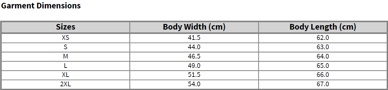 Available in XS to 2XL to suit all sizes